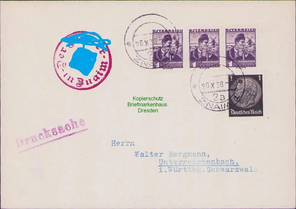 B21319 Brief Znaim Sudetenland Österreich Mischfrankatur 1938