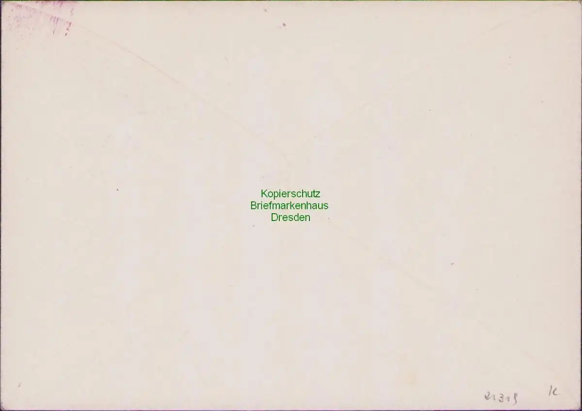 blaue Übermalung nur im scan, wenn Sie die Karte ohne Übermalung sehen möchten, können Sie dies über die Webseite vom Briefmarkenhaus Dresden per e-mail anfordern bzw. wir können dort ungeschwärzte scans zeigen