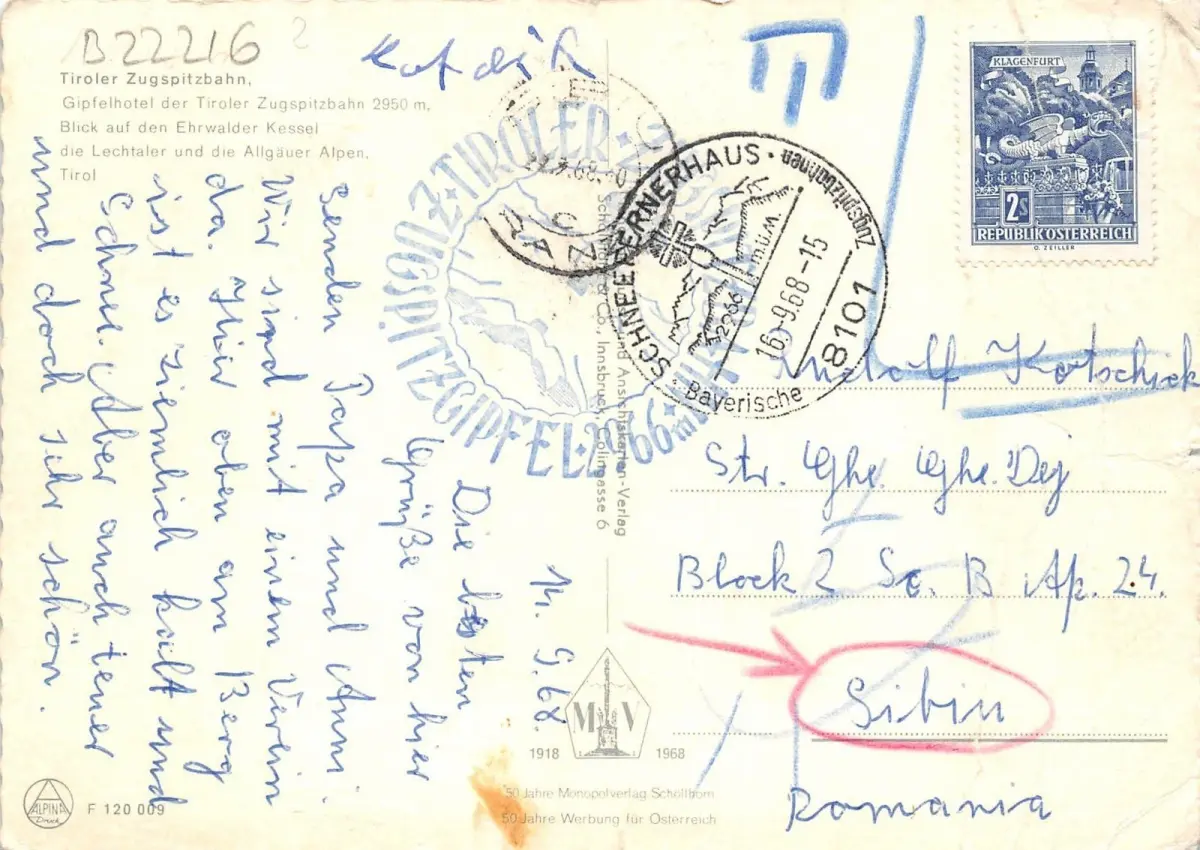 22821 - Tirol - Innsbruck , Alpenzentrum , Nordkettenbahn gegen Süden , Seilbahn - gelaufen 1968