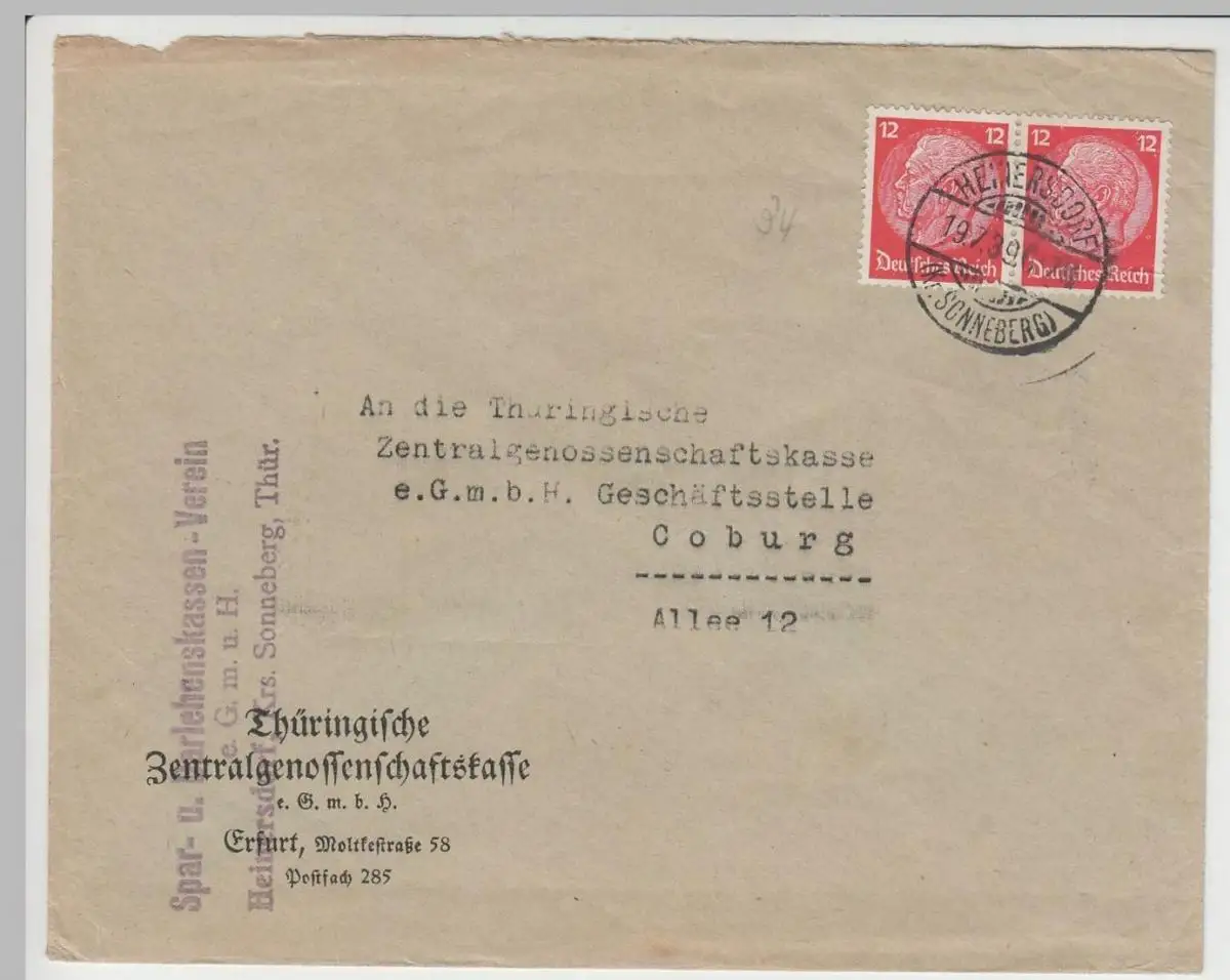 (B2278) Bedarfsbrief DR, Stempel Heinersdorf 1939