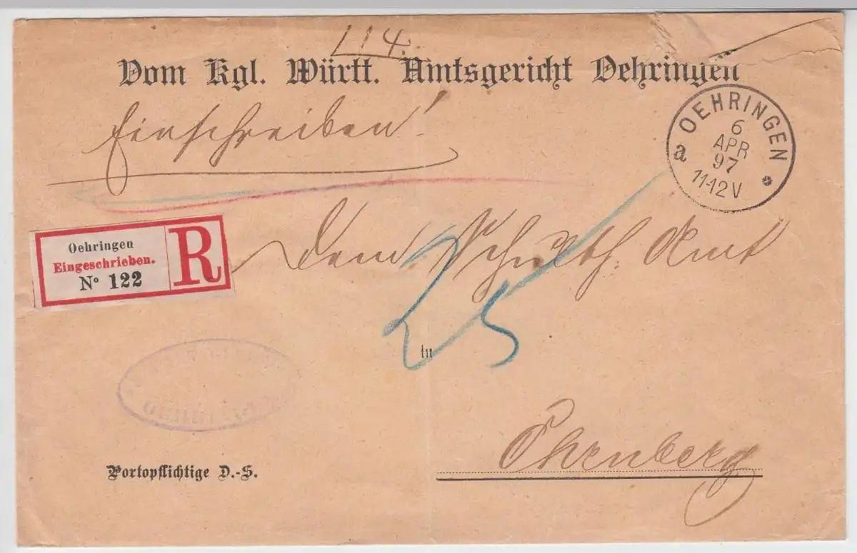 - (B2436) Bedarfsbrief Dienstsache, Amtsgericht Oehringen. R-Brief 1897