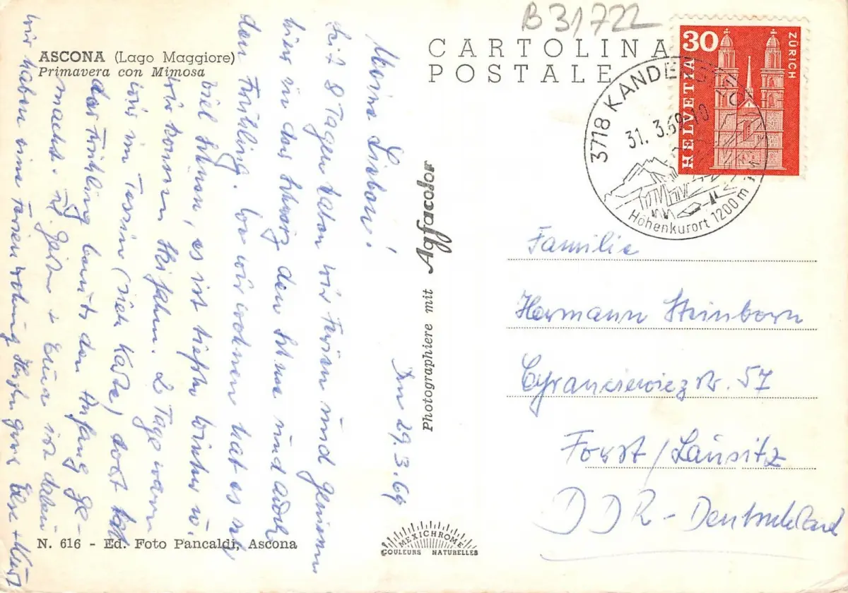 58617 - Schweiz - Ronco , Ascona , Lago Maggiore - gelaufen