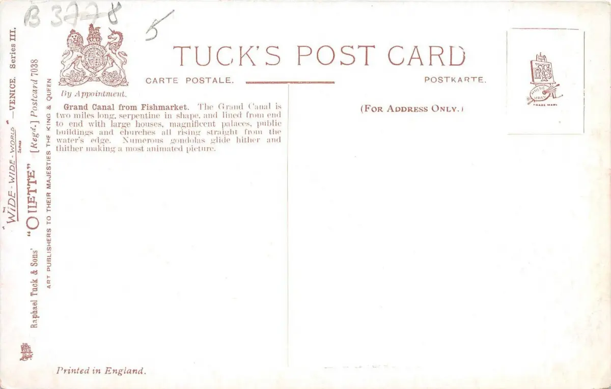 B3778 Italien Venedig Canal Grande von Fishmarke Front/Back Scan