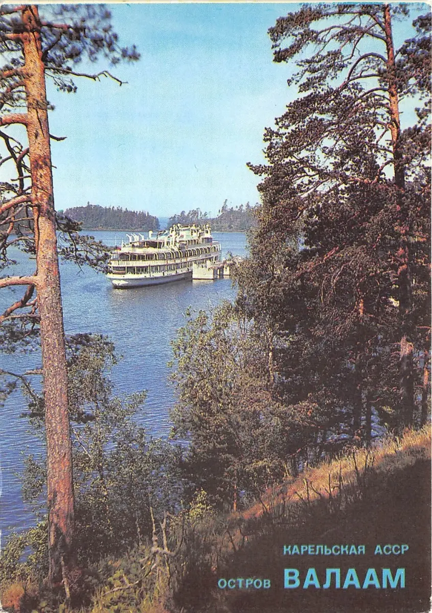 ALTE POSTKARTE VALAAM VALAMO LADOGA LADOGASEE MÖNCHE BEI EINER KAHNFAHRT monk Russia Russland..
