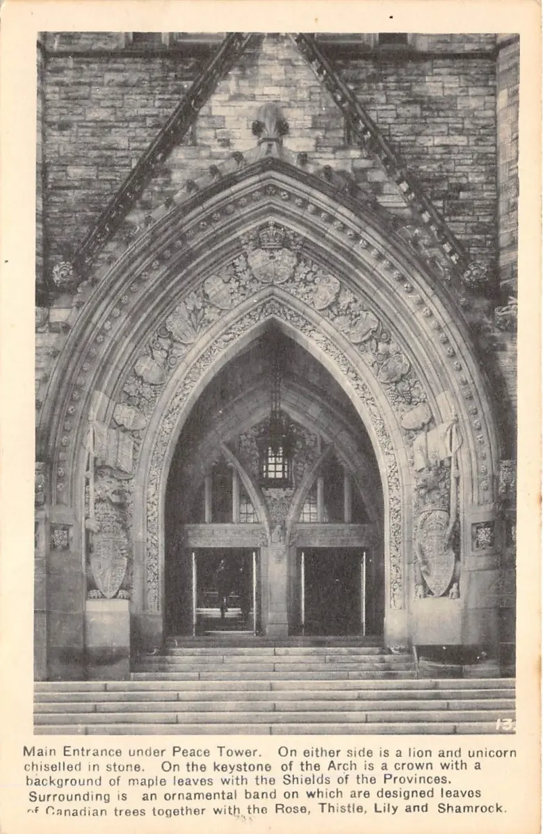 Postcard Ottawa Memorial Chamber, Peace Tower, Parliament Buildings 1920