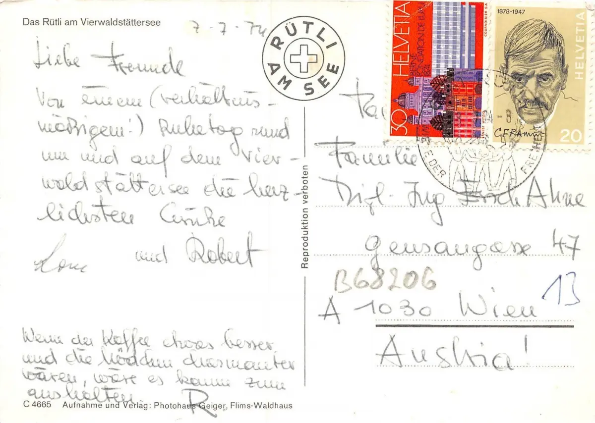Litho Luzern Stadt Schweiz, Hotel du Rutli, A. Disler-Felder
