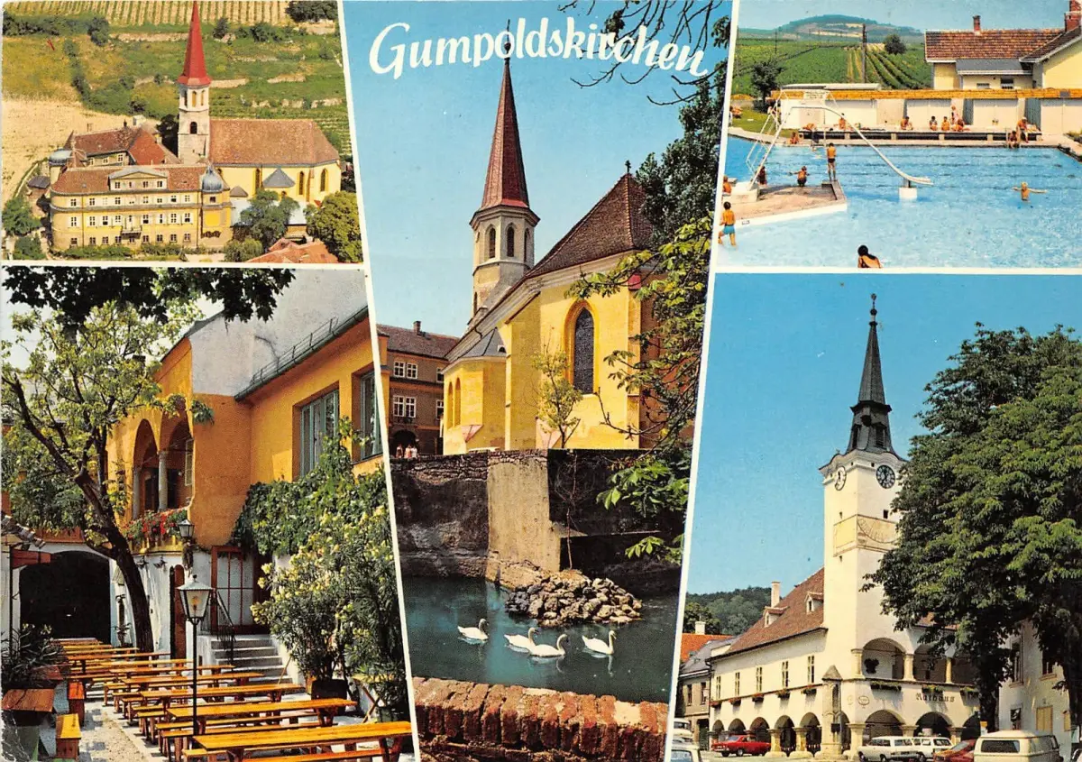 Gumpoldskirchen Niederoesterreich Kirchen Schwanenteich Schwimmbad Weinrestaurant Kat..