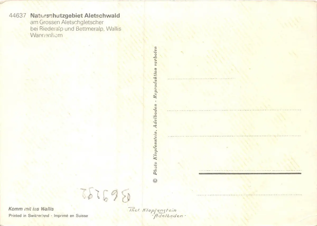 Wallis Valais Kanton Naturschutzgebiet Aletschwald Alpengletscher Kat. Sion
