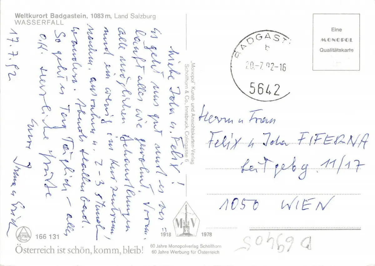 11754 - Salzburg - Bad Gastein , Wasserfall - gelaufen 1948