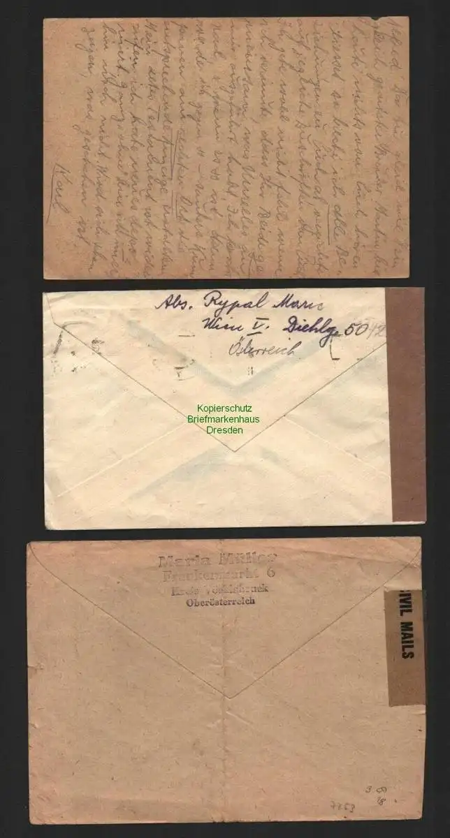 B7253 3x Brief Karte Zenur Österreich 1946 1947 1949