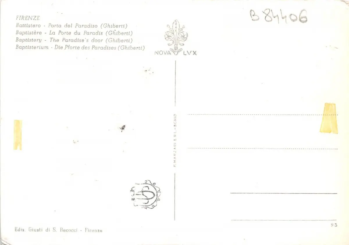 Cartolina Florenz Firenze Battistero Porta del Paradiso (Ghiberti) 1982
