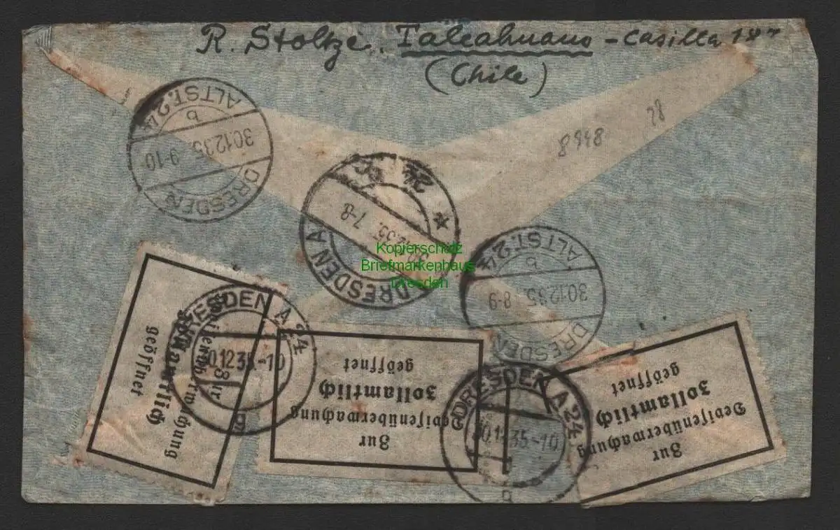 B8948 Brief Chile Talcahuano 1935 Avion via Condor nach Dresden Zollamtlich geöffnet