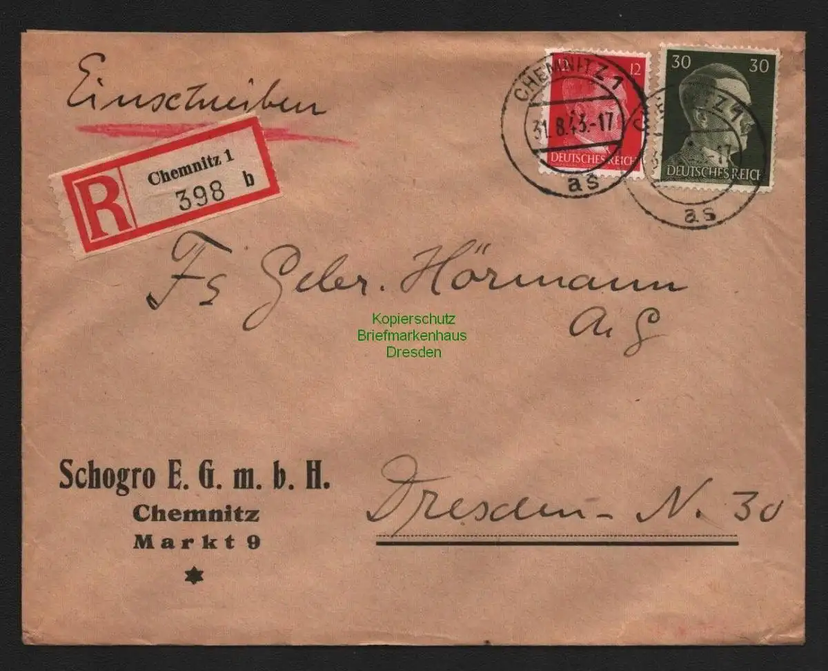 R-Brief an Gebr. Hörmann A.-G. Deutschlands größte Waffelfabrik Dresden N 30 Dresden Mickten Mischfrankatur Hitler Firma