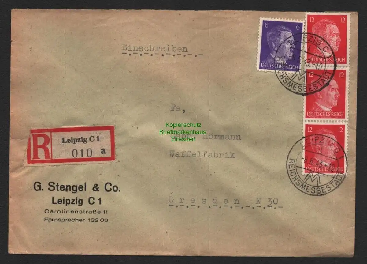 R-Brief an Gebr. Hörmann A.-G. Deutschlands größte Waffelfabrik Dresden N 30 Dresden Mickten Mischfrankatur Hitler Firma