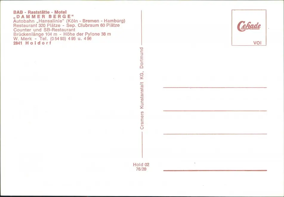 Name: BAB-Raststätte - Motel DAMMERBERGE Autobahn ,,Hansalinie" (Köln - Bremen - Hamburg)