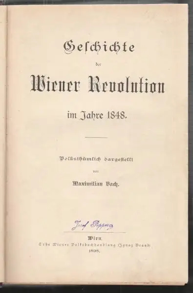 BACH, Geschichte der Wiener Revolution im Jahre... 1898