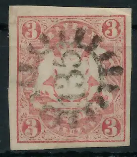 3 Kr rot, Freimarke, Staatswappen geschnitten, geschlossener Mühlradstempel Nr. 135, II=Freilassing Ob 15.- nach Sem, rückseitig sauber