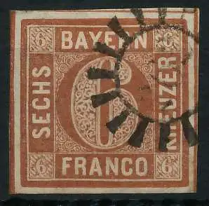 6 Kr braun, Freimarke, Wertziffer im Viereck (Quadratausgabe), geschlossener Mühlradstempel Nr. 262, I=Peiß Ob 50.- / II=Krumbach Sc 10.- nach Sem