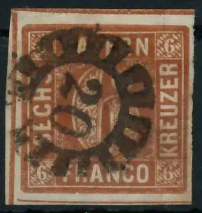 6 Kr braun, Freimarke, Wertziffer im Viereck (Quadratausgabe), geschlossener Mühlradstempel Nr. 20, I=Bamberg Of 3.- / II=Amstein Uf 10.- nach Sem, teils schmalrandig