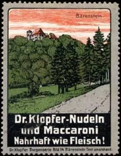 Nudeln und Maccaroni, Burgenserie, Bild 14, Rückseite mit Text, Größe/Zustand: 6x4 , guter Zustand, Original alte Reklamemarke die seinerzeit für die Werbung benutzt wurde