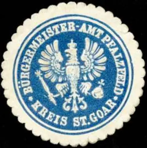 Kreis St. Goar, blau, weiß, geprägt, Größe/Zustand: 4 , guter Zustand, Original Verschluss-Siegelmarke aus Papier welche früher von Behörden, Firmen etc. zum Versiegeln der Briefe benutzt wurden