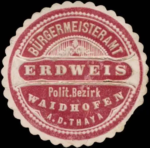 Polit. Bezirk Waidhofen a.d. Thaya, rotbraun, weiß, geprägt, Größe/Zustand: 4 , beschädigt, Original Verschluss-Siegelmarke aus Papier welche früher von Behörden, Firmen etc. zum Versiegeln der Briefe benutzt wurden