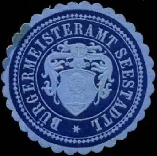 blau, geprägt, Größe/Zustand: 4 , guter Zustand, Original Verschluss-Siegelmarke aus Papier welche früher von Behörden, Firmen etc. zum Versiegeln der Briefe benutzt wurden
