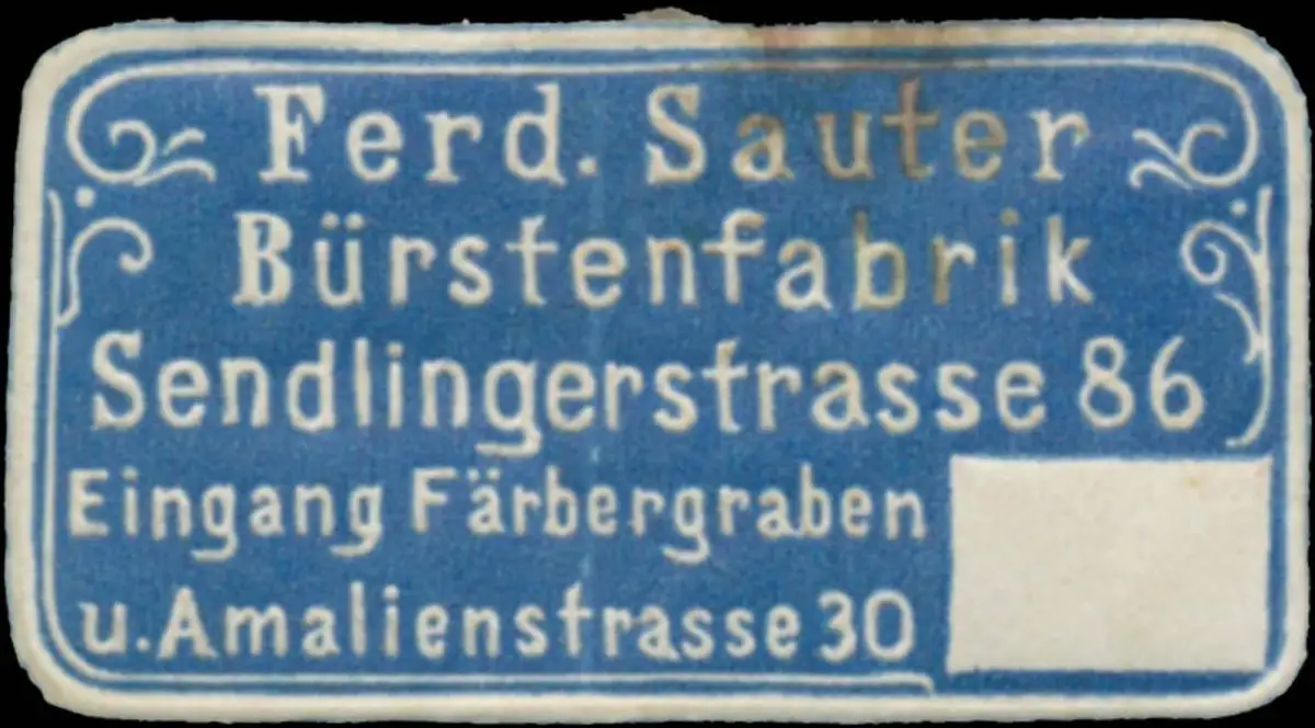 Bürsten, Sendlingerstraße 86 und Amalienstraße 30, Größe/Zustand: 2x3 , fleckig, Original alte Reklamemarke die seinerzeit für die Werbung benutzt wurde