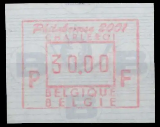 30F Wert aus der ATM-Ausgabe mit Inschrift Philabourse 2001