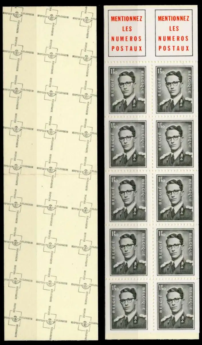 Markenheftchen König Baudouin, 10 mal 1,5 Fr, mit Reklamefeld "MENTIONNEZ LES NUMEROS POSTAUX"