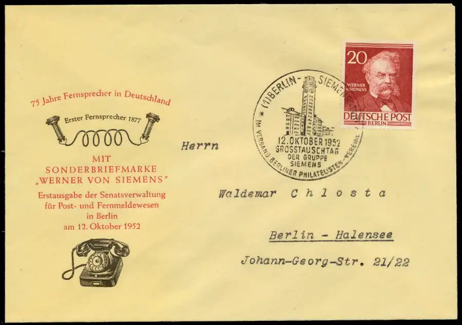 20 Pfg Männer aus der Geschichte Berlins auf FDC, rückseitig sauber