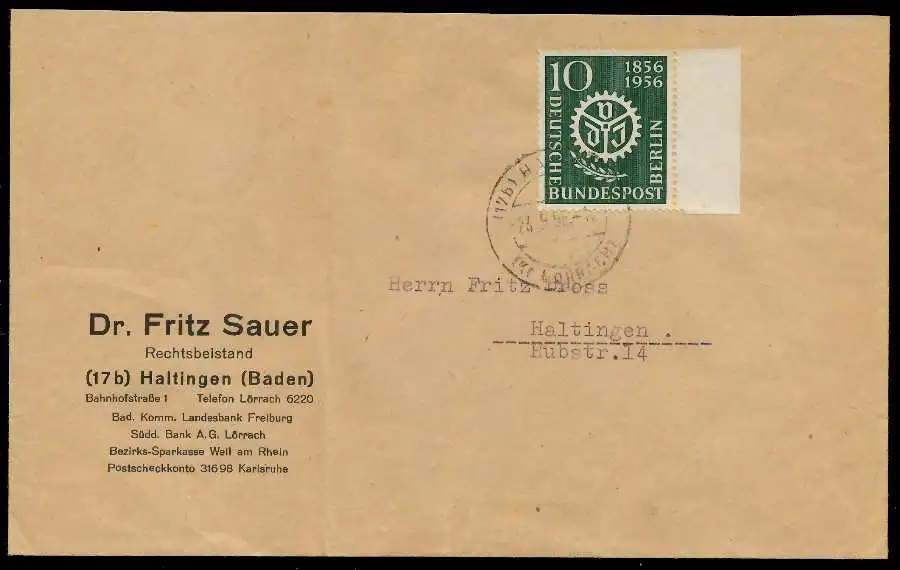 BERLIN 1956 Nr 138 BRIEF EF 794CFE