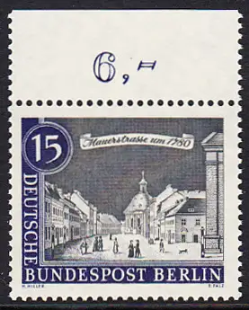 BERLIN 1962 Michel-Nummer 220 postfrisch EINZELMARKE RAND oben (a03) - Alt-Berlin: Mauerstraße