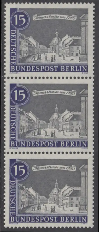 BERLIN 1962 Michel-Nummer 220 postfrisch vert.STRIP(3) - Alt-Berlin: Mauerstraße