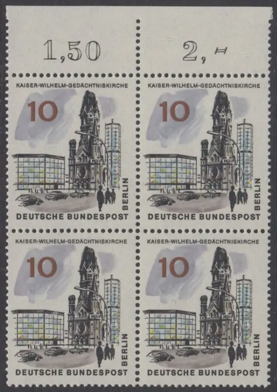 BERLIN 1965 Michel-Nummer 254 postfrisch BLOCK RÄNDER oben - Das neue Berlin: Kaiser-Wilhelm-Gedächtniskirche