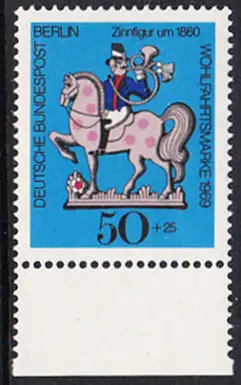 BERLIN 1969 Michel-Nummer 351 postfrisch EINZELMARKE RAND unten - Zinnfiguren: Postreiter