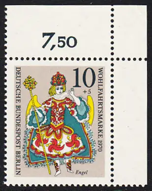 BERLIN 1970 Michel-Nummer 378 postfrisch EINZELMARKE ECKRAND oben rechts- Weihnachten