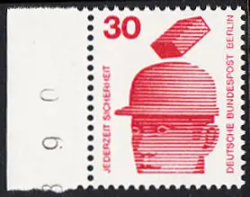 BERLIN 1971 Michel-Nummer 406 postfrisch EINZELMARKE RAND links (m/ BZ) (a) - Unfallverhütung: Schutzhelm