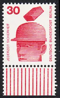 BERLIN 1971 Michel-Nummer 406 postfrisch EINZELMARKE RAND unten (a) - Unfallverhütung: Schutzhelm