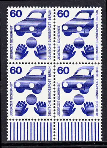 BERLIN 1971 Michel-Nummer 409 postfrisch BLOCK RÄNDER unten - Unfallverhütung: Verkehrssicherheit, Ball vor Auto
