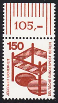BERLIN 1971 Michel-Nummer 411 postfrisch EINZELMARKE RAND oben (c) - Unfallverhütung: Absperrung