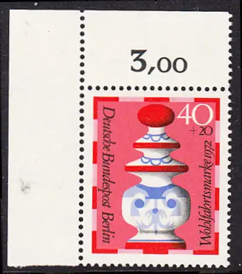 BERLIN 1972 Michel-Nummer 437 postfrisch EINZELMARKE ECKRAND oben links - Schachfiguren: Dame