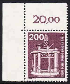 BERLIN 1975 Michel-Nummer 506 postfrisch EINZELMARKE ECKRAND oben links - Industrie und Technik: Bohrinsel