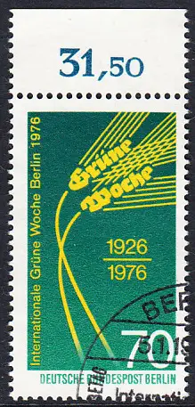 BERLIN 1976 Michel-Nummer 516 gestempelt EINZELMARKE RAND oben (k)