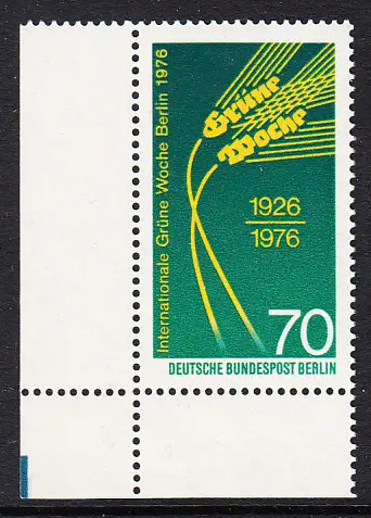 BERLIN 1976 Michel-Nummer 516 postfrisch EINZELMARKE ECKRAND unten links - Internationale Grüne Woche