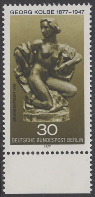 BERLIN 1977 Michel-Nummer 543 postfrisch EINZELMARKE RAND unten - Georg Kolbe, Maler und Bildhauer