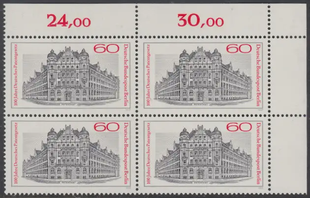 BERLIN 1977 Michel-Nummer 550 postfrisch BLOCK ECKRAND oben rechts - Deutsches Patentgesetz