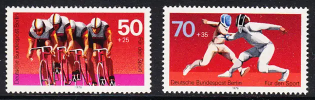 BERLIN 1978 Michel-Nummer 567-568 postfrisch SATZ(2) EINZELMARKEN - Sporthilfe: Radsport / Fechten