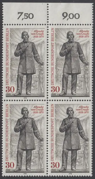BERLIN 1978 Michel-Nummer 569 postfrisch BLOCK RÄNDER oben (a02) - Albrecht von Graefe, Augenarzt