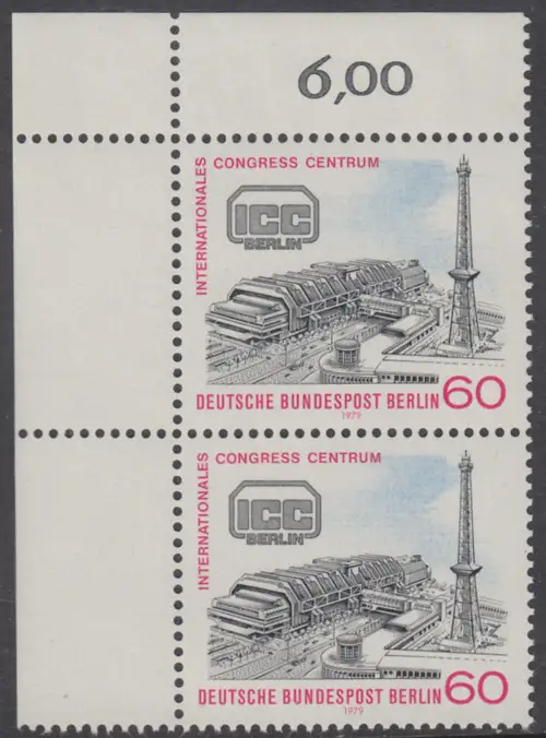BERLIN 1979 Michel-Nummer 591 postfrisch vert.PAAR ECKRAND oben links - Internationales Congress-Centrum (ICC), Berlin